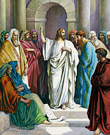Christ's Visit to Nazareth Matthew 13:53-58 Mark 6:1-6 Luke 4:16-30 witnessing, Jesus, teaching, nazareth, sabbath, rejection, fulfilled, prophecy, prophet, sin, synagogue, honor, family, hometown PROJECTION - License for PowerPoint™ PRINT – buy a print of this picture; optional frame Bible Hub |