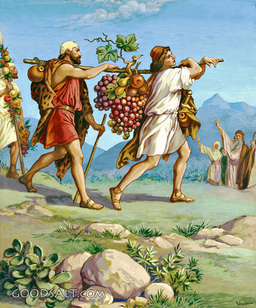 Spies Report of Canaan Numbers 13 Deuteronomy 1:19-33 witnessing, twelve, milk, history, faith, sin, joshua, discipleship, family, moses, spies, wilderness, caleb, canaan, love, commandments, honey, giants PROJECTION - License for PowerPoint™ PRINT – buy a print of this picture; optional frame Bible Hub |