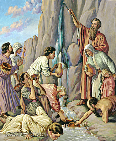 Moses Striking the Rock Numbers 20:1-13 salvation, desert, water, history, rock, faith, disobedience, prophecy, sin, moses, aaron, wilderness, meribah, israelites, complaint PROJECTION - License for PowerPoint™ PRINT – buy a print of this picture; optional frame Bible Hub |