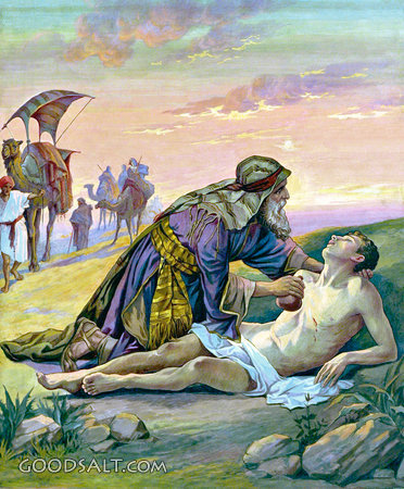 Good Samaritan Luke 10:25-37 salvation, Jesus, parable, samaritan, levite, history, priest, thieves, eternal, neighbor, jericho, love, commandments, robbers PROJECTION - License for PowerPoint™ PRINT – buy a print of this picture; optional frame Bible Hub |