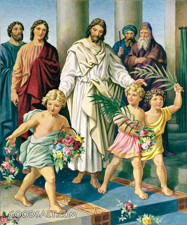 Triumphal Entry and Children Matthew 21:1-17 witnessing, Jesus, history, jerusalem, faith, palm, king, prophecy, sin, discipleship, praise, family, children, commandments, branches, hosanna, babes, sucklings PROJECTION - License for PowerPoint™ PRINT – buy a print of this picture; optional frame Bible Hub |