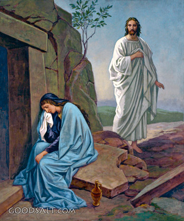 Jesus and Mary at the Tomb Mark 16:9-11 John 20:11-18 witnessing, salvation, god, Jesus, tomb, mary, magdalene, weep, sin, gardener, resurrection, appearance, love, disciples, angels PROJECTION - License for PowerPoint™ PRINT – buy a print of this picture; optional frame Bible Hub |