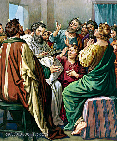 Coming of the Holy Spirit Acts 2:1-12 witnessing, language, god, wind, amaze, spirit, house, pentecost, fire, discipleship, confound, disciples, tongues PROJECTION - License for PowerPoint™ PRINT – buy a print of this picture; optional frame Bible Hub |