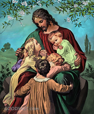 Stdas0284B Matthew 19:14 lord, messiah, hug, christ, Jesus, loving, protecting, tender, king, savior, compassionate, protect, protective, children, publishing, standard, hugs PROJECTION - License for PowerPoint™ PRINT – buy a print of this picture; optional frame Bible Hub |