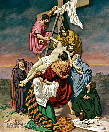 Christ Taken Down From Cross Matthew 27:57-61 Mark 15:42-47 Luke 23:50-56 John 19:38-42 Jesus, arimathea, history, burial, tomb, joseph, cross, garden, discipleship, pilate, nicodemus, sepulchre, easter, love, commandments, passion week PROJECTION - License for PowerPoint™ PRINT – buy a print of this picture; optional frame Bible Hub |