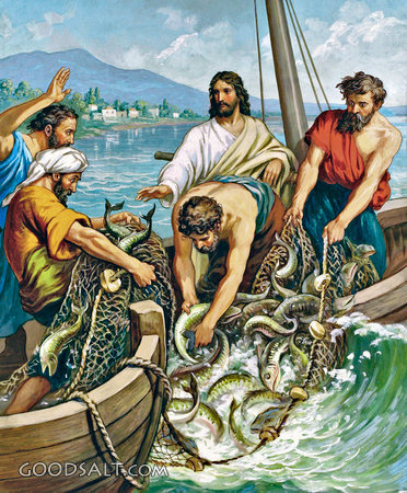 Miraculous Draught of Fishes Luke 5:1-11 witnessing, salvation, Jesus, john, peter, boat, faith, galilee, fish, fishing, discipleship, james, disciples, nets PROJECTION - License for PowerPoint™ PRINT – buy a print of this picture; optional frame Bible Hub |