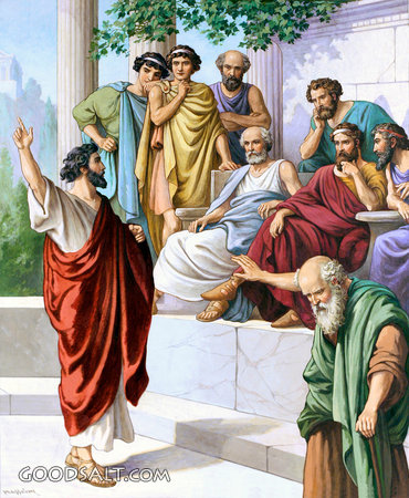 Paul at Athens Acts 17:16-34 witnessing, salvation, hill, idol, faith, paul, unknown, sin, resurrection, athens, love, commandments, marketplace, Mars, Areopagus, Stoic, Epicurean PROJECTION - License for PowerPoint™ PRINT – buy a print of this picture; optional frame Bible Hub |
