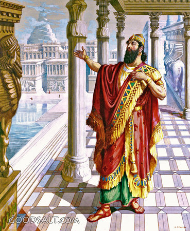 Nebuchadnezzar's Pride and Fall Daniel 4 witnessing, salvation, god, madness, interpretation, pride, tree, judgment, dream, daniel, prophecy, babylon, nebuchadnezzar, sin, discipleship, wickedness PROJECTION - License for PowerPoint™ PRINT – buy a print of this picture; optional frame Bible Hub |