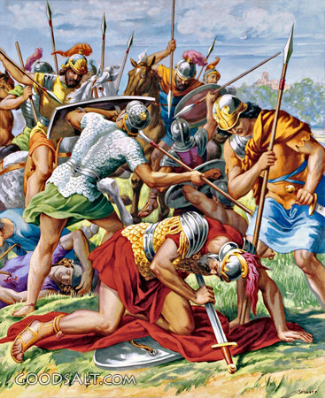 Saul's Son Slain 1 Samuel 31 1 Chronicles 10:1-12 history, saul, slain, death, sin, mount, jonathan, love, Philistines, Abinadab, Melchi-shua, Malki-Shua, Gilboa PROJECTION - License for PowerPoint™ PRINT – buy a print of this picture; optional frame Bible Hub |