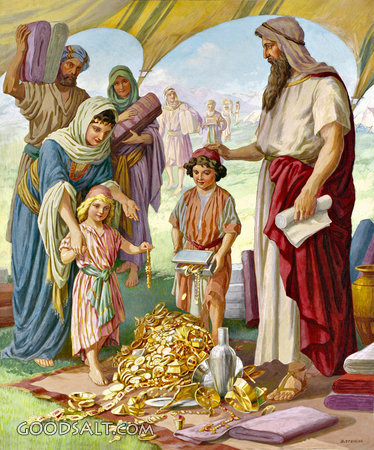 Gift's for God's House Exodus 25:1-9 Exodus 35:4-9 salvation, silver, brass, purple, gold, israel, moses, offering, tabernacle, scarlet, commandments, spices PROJECTION - License for PowerPoint™ PRINT – buy a print of this picture; optional frame Bible Hub |