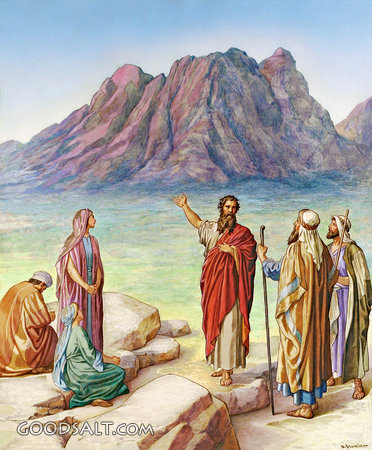 Israel at Mount Sinai Exodus 19 witnessing, salvation, history, trumpet, thunder, cloud, faith, kingdom, prophecy, discipleship, lightening, israel, moses, mount, sinai, commandments, priests PROJECTION - License for PowerPoint™ PRINT – buy a print of this picture; optional frame Bible Hub |