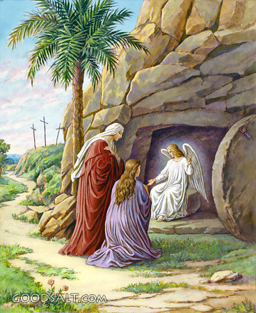 Angels and Mary's at the Tomb Matthew 28:1-10 Mark 16:1-8 Luke 24:1-10 angel, witnessing, risen, salvation, Jesus, women, tomb, mary, magdalene, prophecy, sin, resurrection, sepulchre, easter, Joanna, passion week PROJECTION - License for PowerPoint™ PRINT – buy a print of this picture; optional frame Bible Hub |