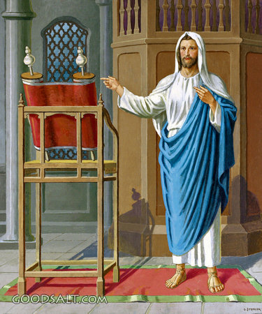 Jesus in the Synagogue in Nazareth Matthew 13:53-58 Mark 6:1-6 Luke 4:16-30 witnessing, Jesus, teaching, nazareth, sabbath, history, rejection, fulfilled, faith, prophet, synagogue, honor, family, hometown PROJECTION - License for PowerPoint™ PRINT – buy a print of this picture; optional frame Bible Hub |