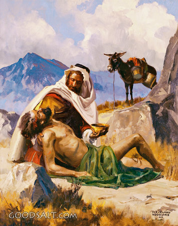 The Good Samaritan Luke 10:25-37 salvation, Jesus, parable, samaritan, levite, history, life, thieves, eternal, neighbor, jericho, love, commandments, robbers PROJECTION - License for PowerPoint™ PRINT – buy a print of this picture; optional frame Bible Hub |