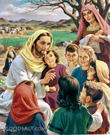 Jesus and Children Matthew 19:13-15 Mark 10:13-16 Luke 18:15-17 salvation, Jesus, bless, suffer, heaven, kingdom, allow, family, little, children, disciples, forbid PROJECTION - License for PowerPoint™ PRINT – buy a print of this picture; optional frame Bible Hub |