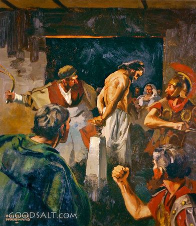 Christ's Beating Matthew 27:26 Mark 15:15 John 19:1 Jesus, beat, king, whip, sin, pilate, easter, crucifixion, romans, soldiers, scourge, Jews, passion week PROJECTION - License for PowerPoint™ PRINT – buy a print of this picture; optional frame Bible Hub |