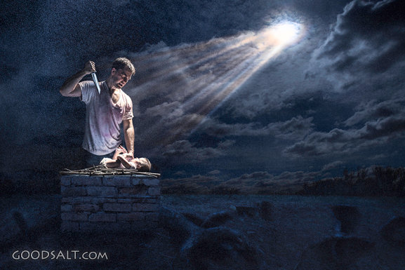 God's Love Genesis 22 Romans 8:30-32 knife, altar, god's love, Tim, Mielke, agape, real love, save the world, sent his son, begotten son, child sacrifice PROJECTION - License for PowerPoint™ PRINT – buy a print of this picture; optional frame Bible Hub |