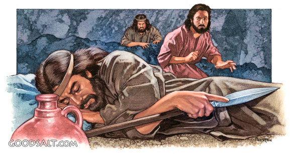 1 Samuel 24:3 1 Samuel 24:3 people, asleep, water, man, men, person, saul, deliverance, spear, spare, thief, night, steal, sneaking, david, jug, pitcher, sleep, tired, sleeping PROJECTION - License for PowerPoint™ PRINT – buy a print of this picture; optional frame Bible Hub |