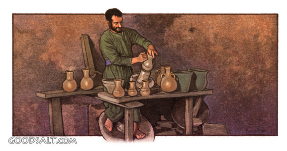 people, mold, table, vessel, shape, pot, man, men, clay, person, male, pottery, potter, bottle