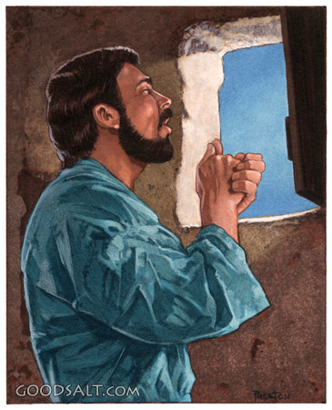 people, pray, man, men, person, worship, praying, daniel, prophet, male, window, meditate