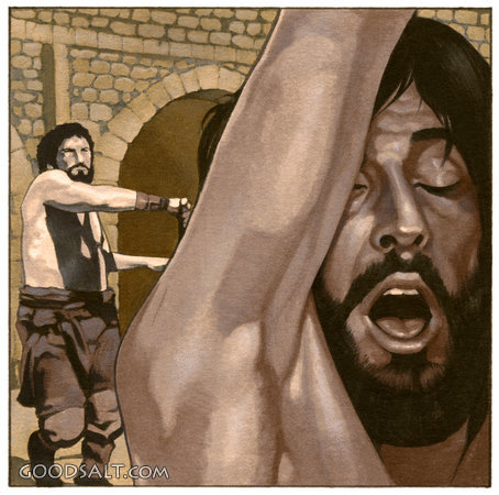 Acts 5:40 Acts 5:40 lord, master, messiah, agony, grief, pain, suffering, punishment, christ, Jesus, sorrow, emmanuel, immanuel, beating, man, men, soldier, roman, whip, savior, anguish, sorrowful, male, prisoner, hurt, hurting PROJECTION - License for PowerPoint™ PRINT – buy a print of this picture; optional frame Bible Hub |