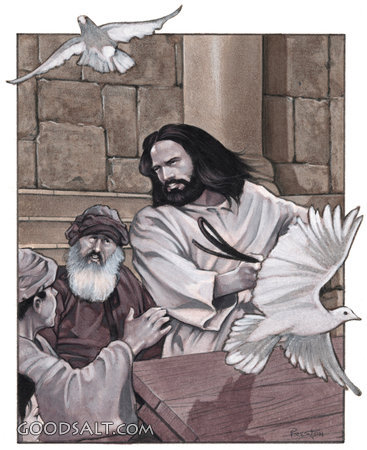 John 2:14-15 John 2:14-15 Matthew 21:12 Mark 11:15 lord, master, messiah, people, christ, Jesus, selling, sell, emmanuel, immanuel, table, chase, dove, man, men, anger, person, temple, money, greedy, building, upset, wall, den, thieves, savior, robber, angry, mad, chasing, disappointment, male, frustrated, frustration, greed, disappointed, trader, hurt, charger, aggrieved, brick, disappoint, frustrate PROJECTION - License for PowerPoint™ PRINT – buy a print of this picture; optional frame Bible Hub |