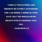 "Look at the nations and observe--be utterly astounded! For I am doing a work in your days that you would never believe even if someone told you.