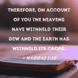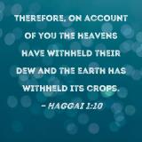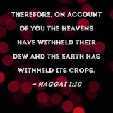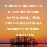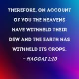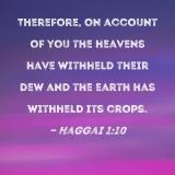 Therefore, on account of you the heavens have withheld their dew and the earth has withheld its crops.