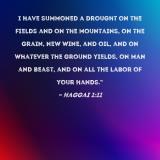 I have summoned a drought on the fields and on the mountains, on the grain, new wine, and oil, and on whatever the ground yields, on man and beast, and on all the labor of your hands."