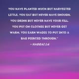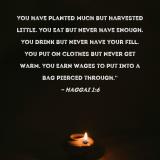 You have planted much but harvested little. You eat but never have enough. You drink but never have your fill. You put on clothes but never get warm. You earn wages to put into a bag pierced through."