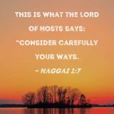 This is what the LORD of Hosts says: "Consider carefully your ways.