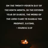 On the twenty-fourth day of the ninth month, in the second year of Darius, the word of the LORD came to Haggai the prophet, saying,