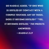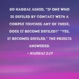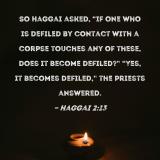 So Haggai asked, "If one who is defiled by contact with a corpse touches any of these, does it become defiled?" "Yes, it becomes defiled," the priests answered.
