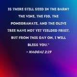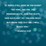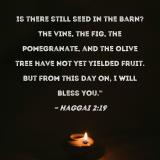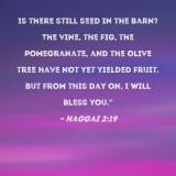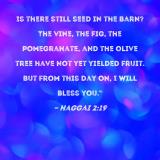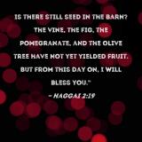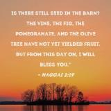 Is there still seed in the barn? The vine, the fig, the pomegranate, and the olive tree have not yet yielded fruit. But from this day on, I will bless you."