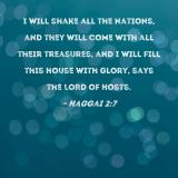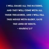 I will shake all the nations, and they will come with all their treasures, and I will fill this house with glory, says the LORD of Hosts.