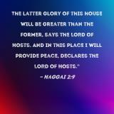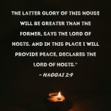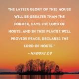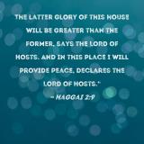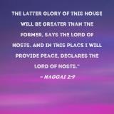 The latter glory of this house will be greater than the former, says the LORD of Hosts. And in this place I will provide peace, declares the LORD of Hosts."