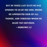 But in these last days He has spoken to us by His Son, whom He appointed heir of all things, and through whom He made the universe.