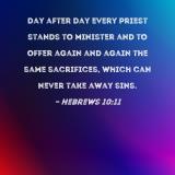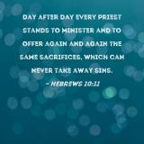 Day after day every priest stands to minister and to offer again and again the same sacrifices, which can never take away sins.