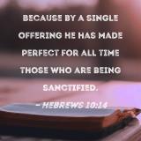 because by a single offering He has made perfect for all time those who are being sanctified.