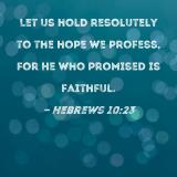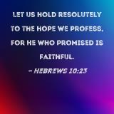 Let us hold resolutely to the hope we profess, for He who promised is faithful.