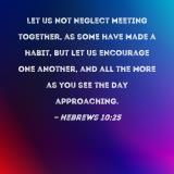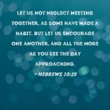 Let us not neglect meeting together, as some have made a habit, but let us encourage one another, and all the more as you see the Day approaching.