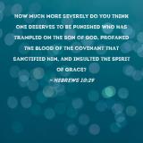 How much more severely do you think one deserves to be punished who has trampled on the Son of God, profaned the blood of the covenant that sanctified him, and insulted the Spirit of grace?