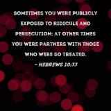 Sometimes you were publicly exposed to ridicule and persecution; at other times you were partners with those who were so treated.