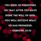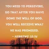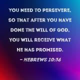 You need to persevere, so that after you have done the will of God, you will receive what He has promised.