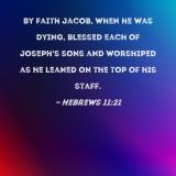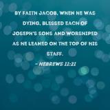 By faith Jacob, when he was dying, blessed each of Joseph's sons and worshiped as he leaned on the top of his staff.