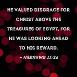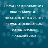 He valued disgrace for Christ above the treasures of Egypt, for he was looking ahead to his reward.