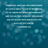 Therefore, since we are surrounded by such a great cloud of witnesses, let us throw off every encumbrance and the sin that so easily entangles, and let us run with endurance the race set out for us.