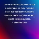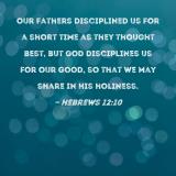 Our fathers disciplined us for a short time as they thought best, but God disciplines us for our good, so that we may share in His holiness.