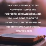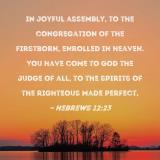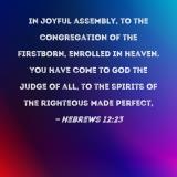 in joyful assembly, to the congregation of the firstborn, enrolled in heaven. You have come to God the Judge of all, to the spirits of the righteous made perfect,