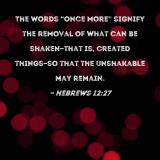 The words "Once more" signify the removal of what can be shaken--that is, created things--so that the unshakable may remain.